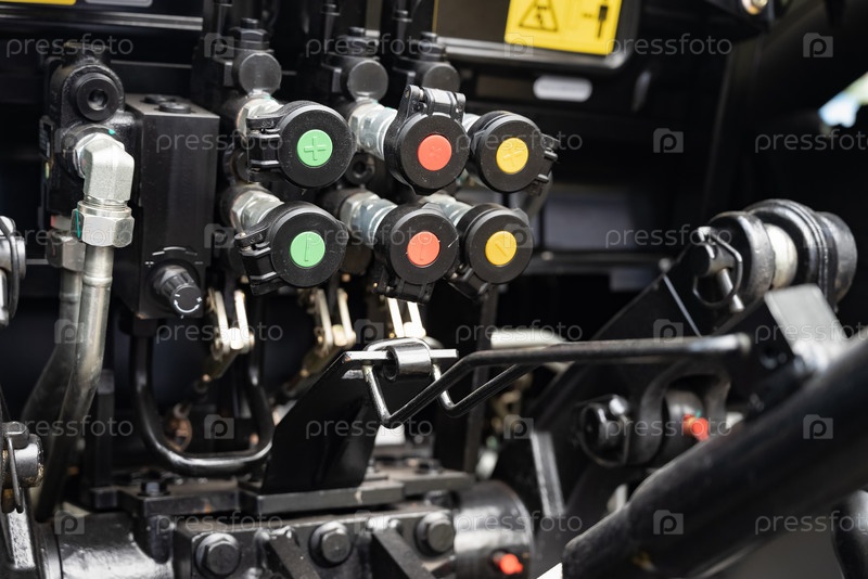 Крупный план гидравлической системы управления с цветными разъемами