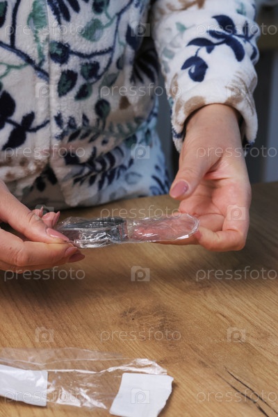 Женщина рассматривает набор кусачек для пионов. Она достает их из упаковки