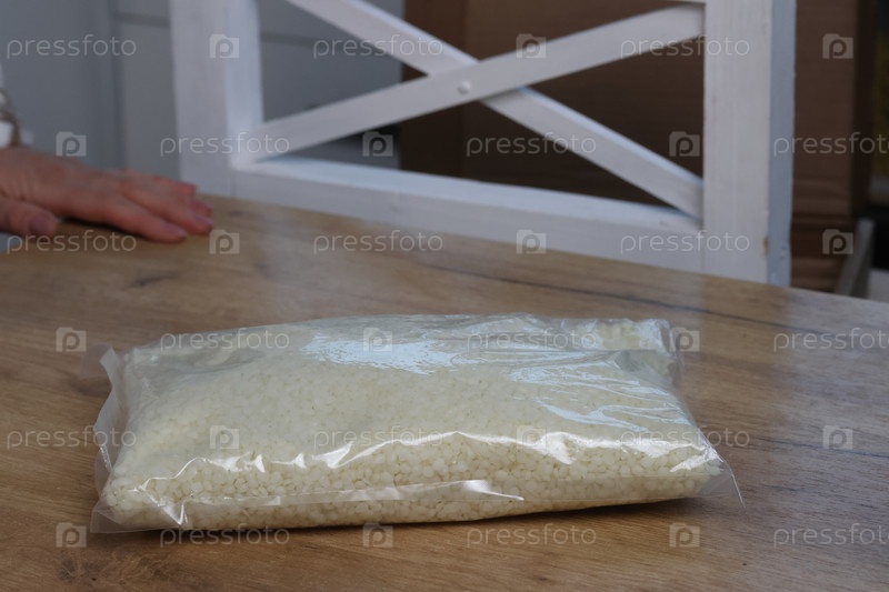 Гранулы воска в мешочке. Воск для поделок и творчества. Лежит на столе