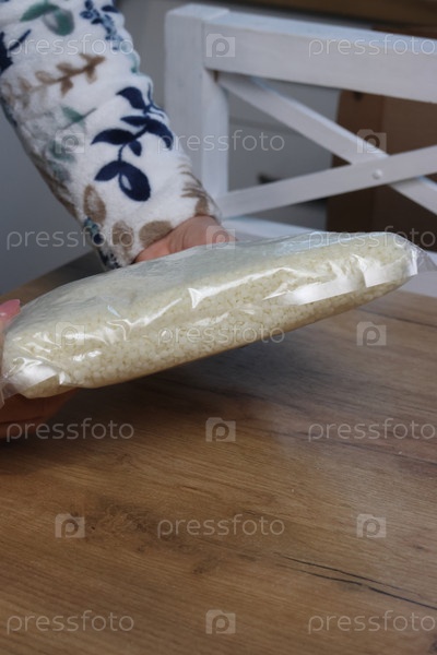 Женщина демонстрирует пакетик с восковыми гранулами. Воск для поделок и творчества. Обзор покупки. Крупный план