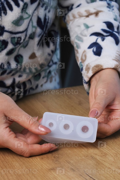 Женщина демонстрирует силиконовую форму для изготовления поделок. Делает обзор покупки. Крупный план