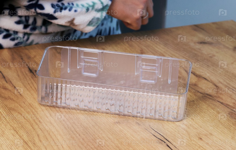 Пластиковая полка для ванной. Женщина делает обзор покупки