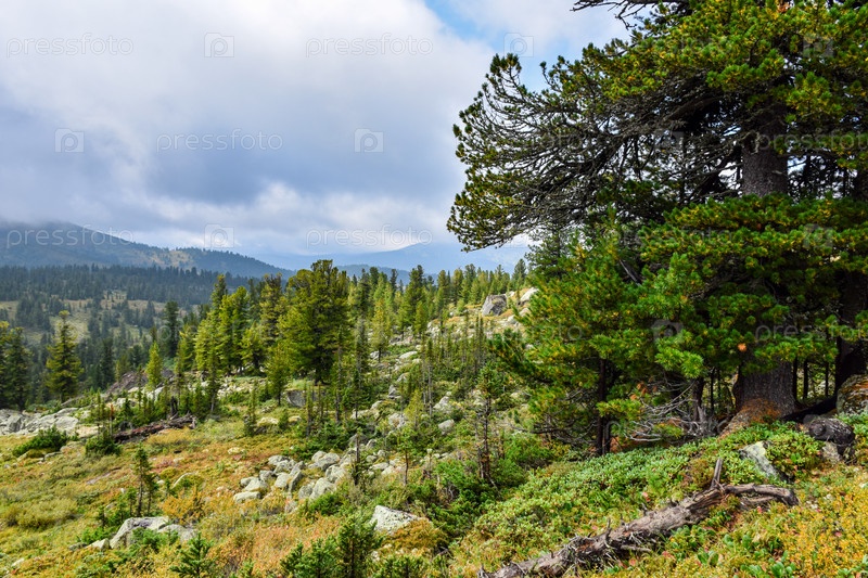 Горы, туман, горный пейзаж, Ергаки, лето, мегалиты, горная тайга