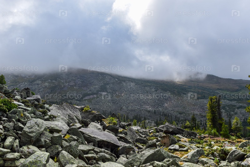 Горы, туман, горный пейзаж, Ергаки, лето, мегалиты, горная тайга