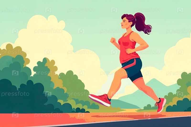Живая молодая женщина plus size делает пробежку в летнем парке. борьба с лишним весом, здоровый образ жизни