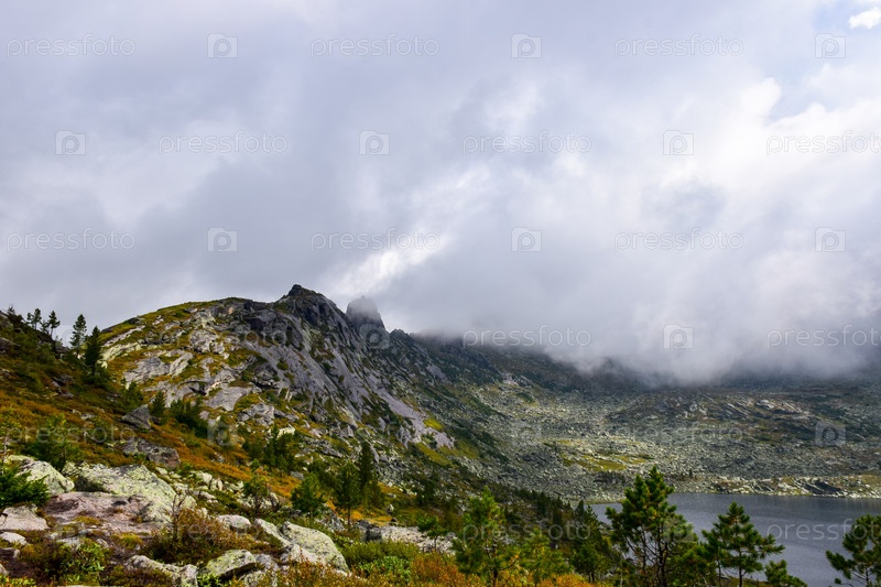 Горы, туман, горный пейзаж, Ергаки, лето, мегалиты, горная тайга