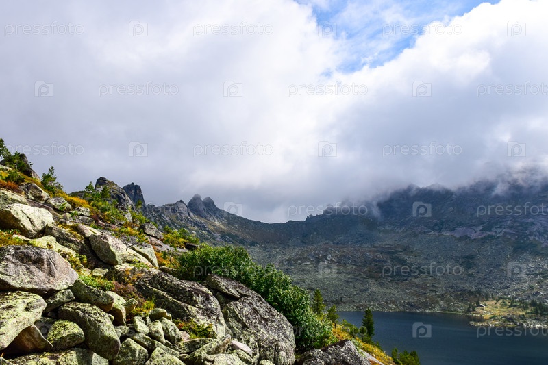 Горы, туман, горный пейзаж, Ергаки, лето, мегалиты, горная тайга