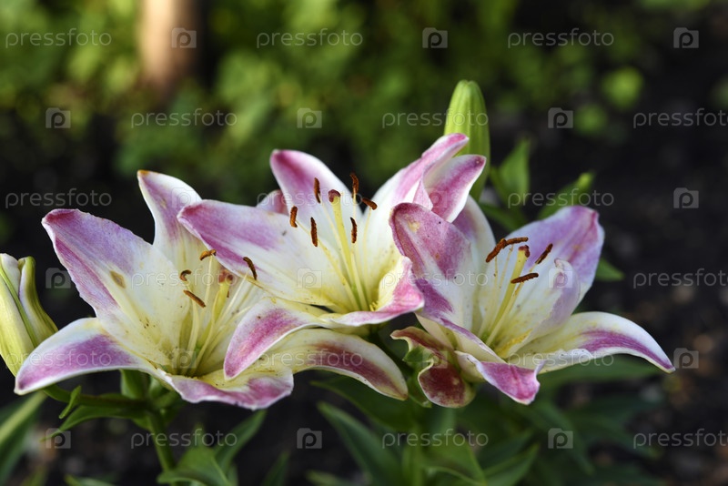 Большие красные и белые лилии. Лилии тигра. Lilium candidum