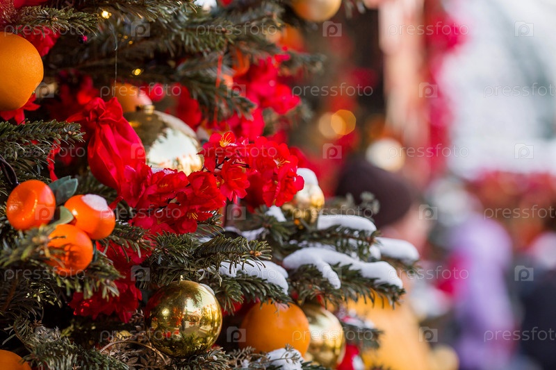 Китайские красные рождественские фонарики на Тверской улице в Москве. Крупный план. Первая в истории встреча китайского Нового года 2024 в Москве