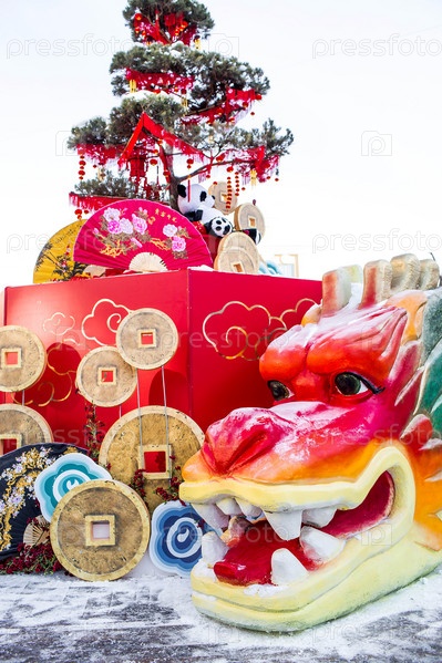 Китайские красные рождественские фонарики на Тверской улице в Москве. Крупный план. Первая в истории встреча китайского Нового года 2024 в Москве