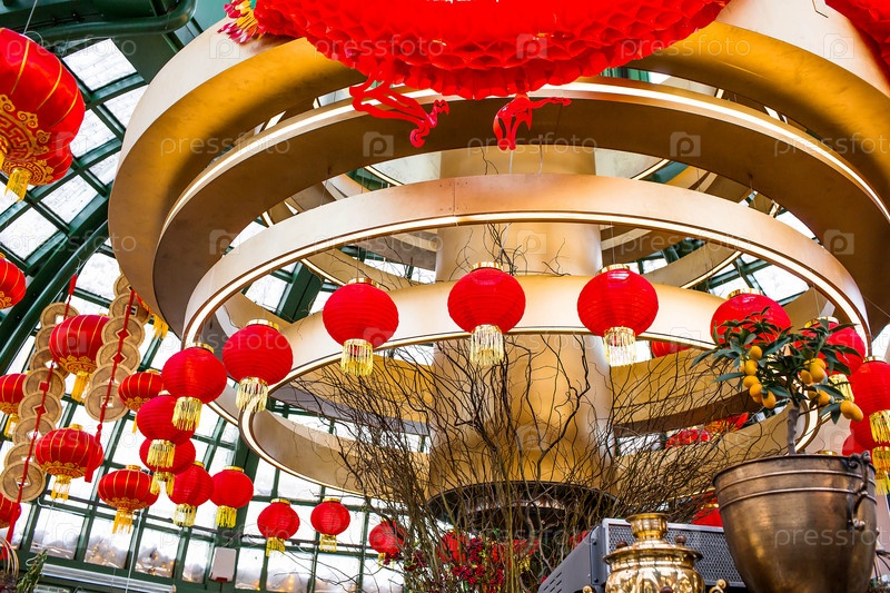 Китайские красные рождественские фонарики на Тверской улице в Москве. Крупный план. Первая в истории встреча китайского Нового года 2024 в Москве