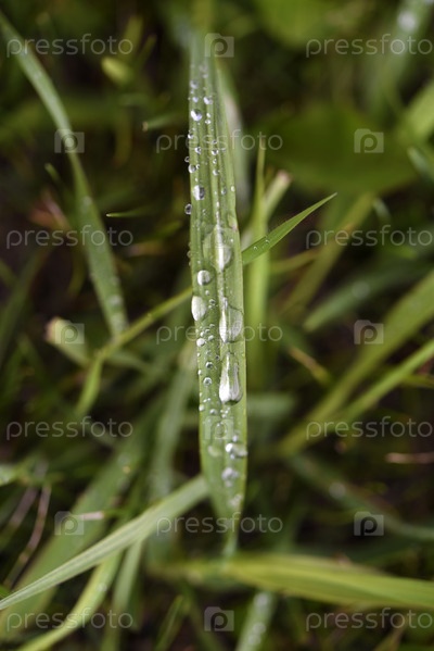 Капли дождя на листьях. Роса на растениях. Растения после дождя