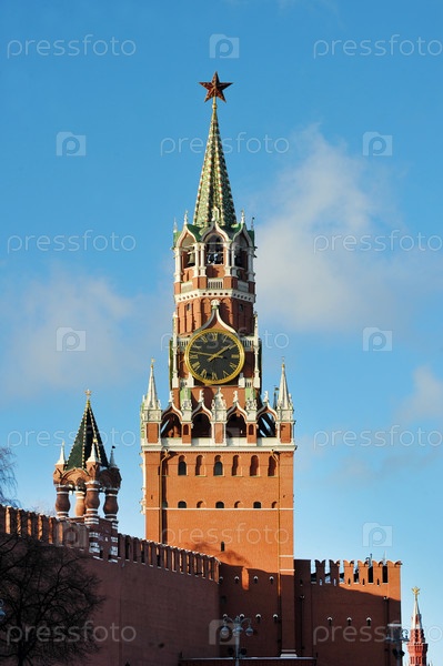Вид на Спасскую башню Кремля на Красной площади в Москве