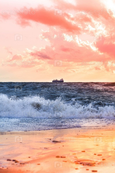 Корабль в море на закате