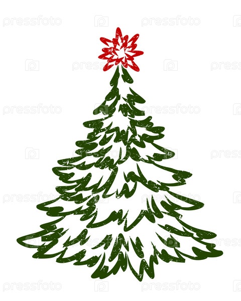 Новогоднее зеленое дерево с красной звездой