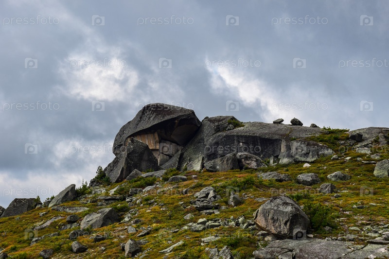 Горы, туман, горный пейзаж, Ергаки, лето, мегалиты, горная тайга