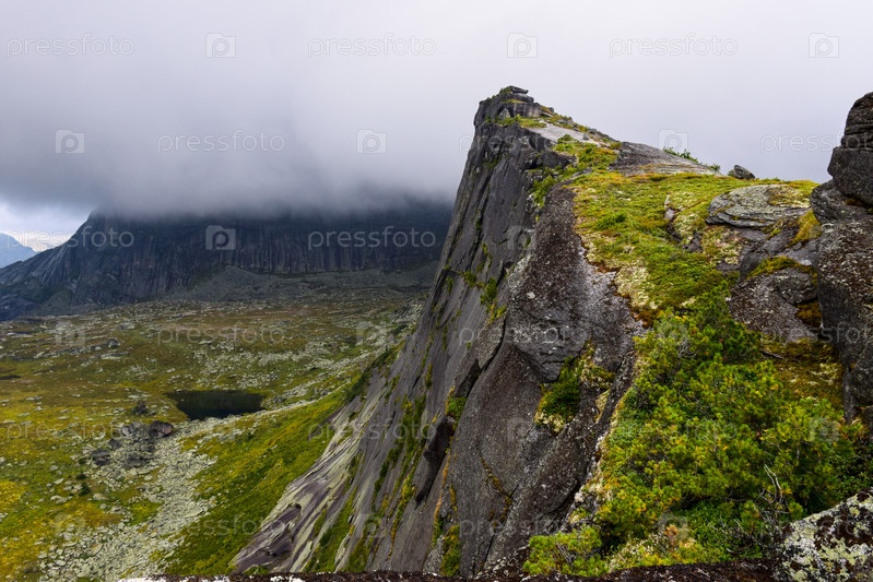 Горы, туман, горный пейзаж, Ергаки, лето, мегалиты, горная тайга