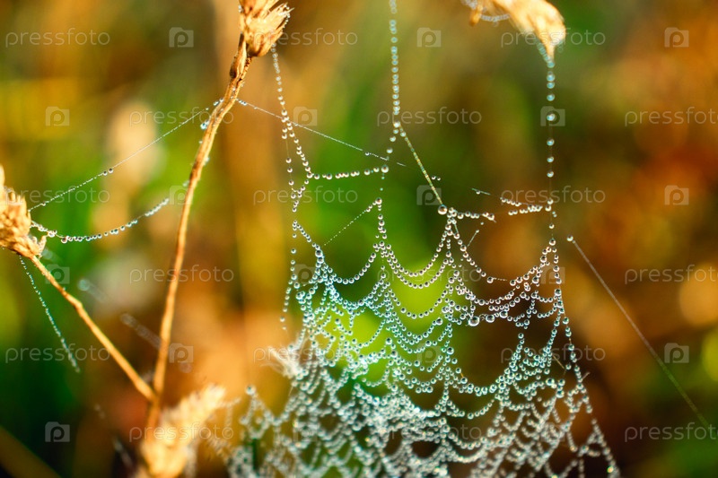 Бусины росы на паутине
