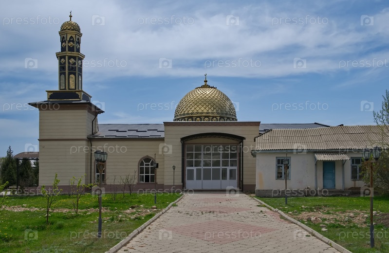 Кыргызстан, Иссык кульский район. Архитектура мусульманской мечети в придорожном поселке вдоль автотрассы вокруг озера Иссык-Куль