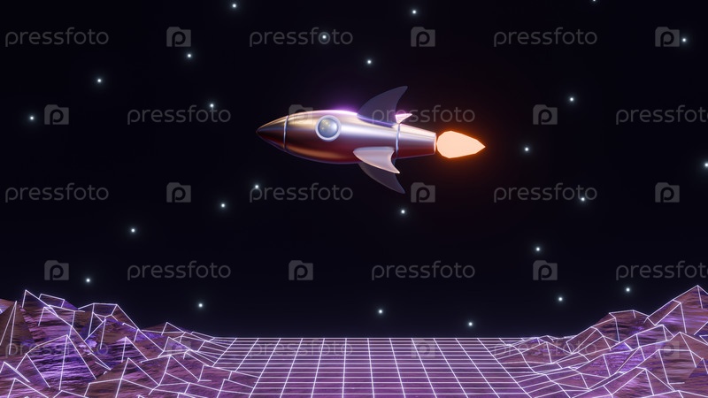 Абстрактная 3D-рендеринговая иллюстрация с мультиштажной ретро ракетой в открытом космосе