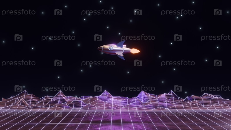 Абстрактная 3D-рендеринговая иллюстрация с мультиштажной ретро ракетой в открытом космосе