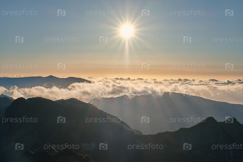 Вид с воздуха на горы возле Пико Руиву, Мадейра, Португалия