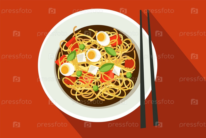 Красочная миска корейского рамена представляет собой тонкую лапшу с овощами и гарниром