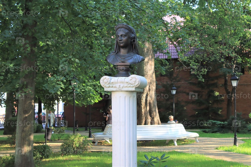 Зеленоградск, Россия-09.2020: Бронзовый бюст королевы Луизы в сквере Зеленоградска, Калининградская область. Этот бюст является копией скульптуры королевы Луизы в Берлинской национальной галерее