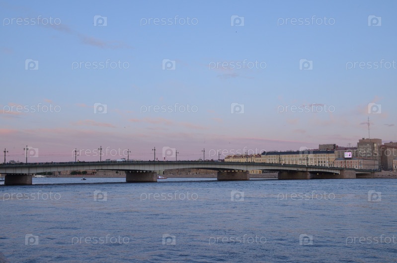 Вид на Литейный мост и Воскресенскую набережную в Санкт-Петербурге на закате