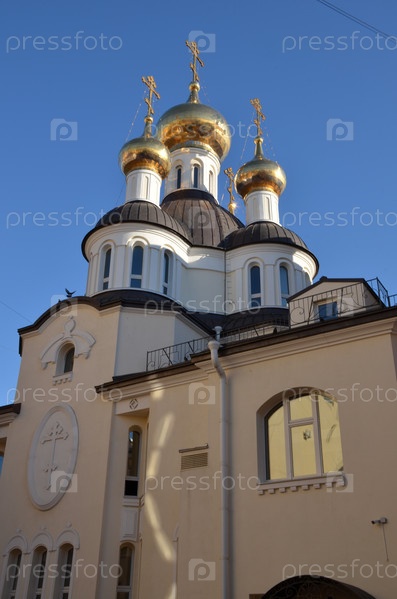 Церковь святой блаженной Ксении Петербургской на Лахтинской улице в Петроградском районе Санкт-Петербурга в солнечный ясный день