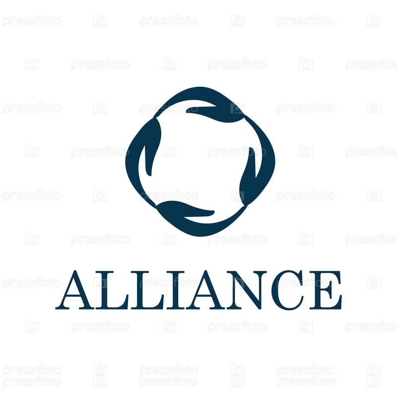 Четыре руки, соприкасающиеся друг с другом, символизируют союз в этом дизайне логотипа
