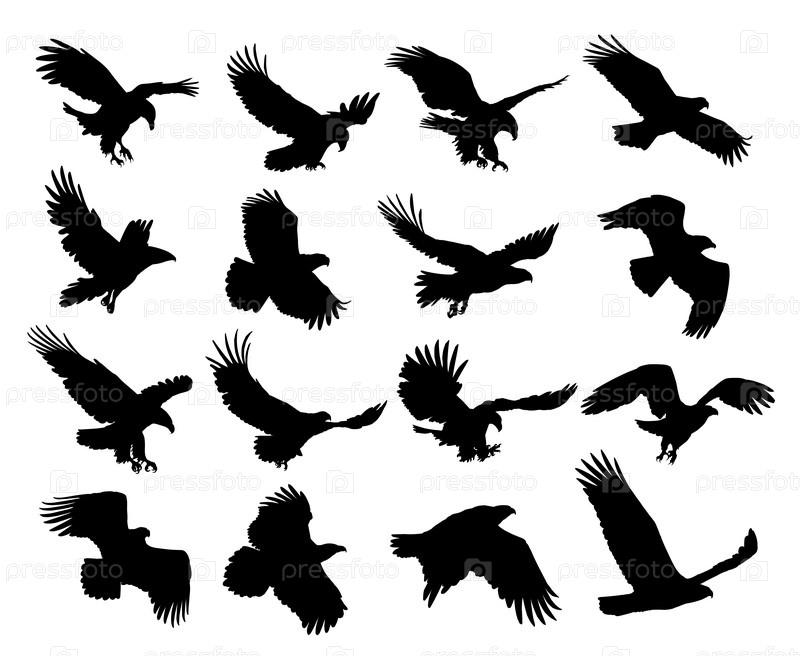 Набор силуэтов диких орлов в полете