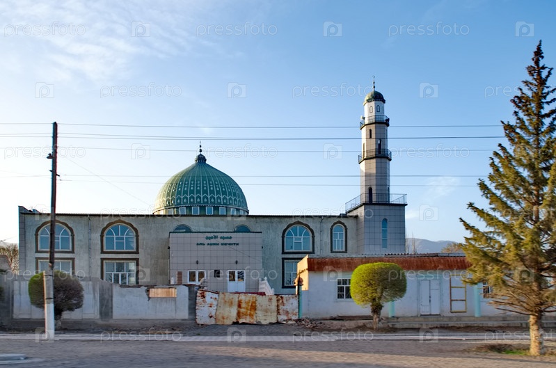Кыргызстан, Иссык-Кульская область. 23 апреля 2024 года. Архитектура мусульманской мечети в придорожной деревне вдоль шоссе вокруг озера Иссык-Куль