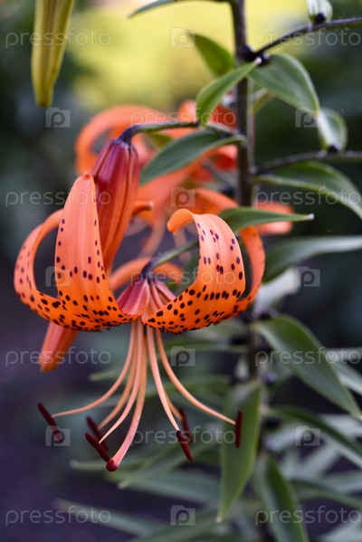 Красивые оранжевые цветы в саду летом. Тигровая лилия. Лилия ланцетолистная