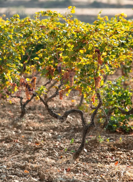 Россия, Республика Крым. Виноградная лоза причудливой формы на бескрайних полях недалеко от города Судак