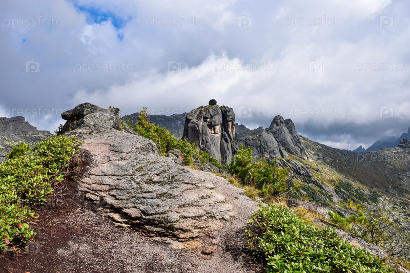 Горы, туман, горный пейзаж, Ергаки, лето, мегалиты, горная тайга