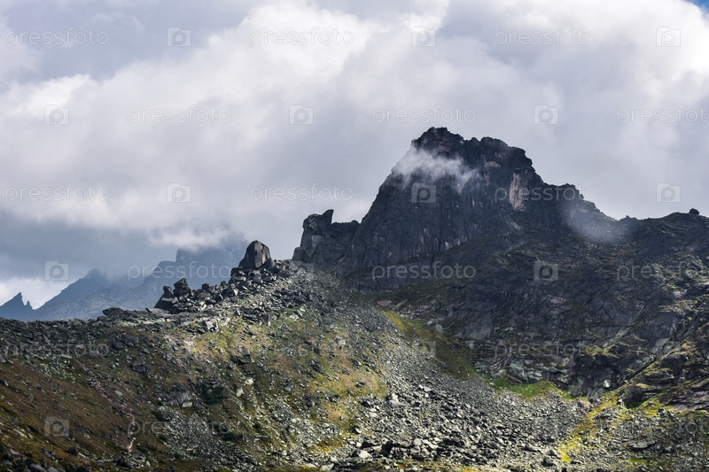 Горы, туман, горный пейзаж, Ергаки, лето, мегалиты, горная тайга