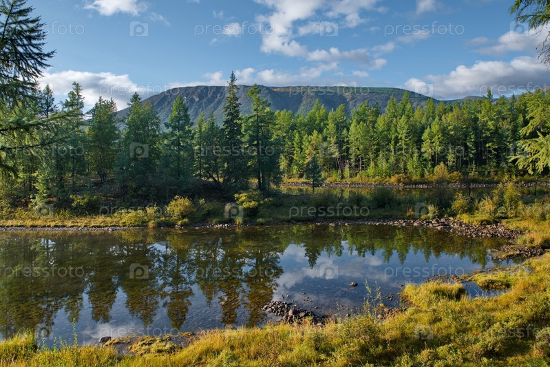 Россия, Западная Бурятия. Раннее утро на скрытом от посторонних глаз пустынном таежном озере Гузен-Нур на левом берегу реки Тиса