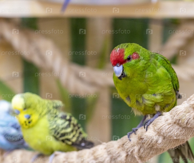 Крупный план красноголового попугая или какарики. Птицы