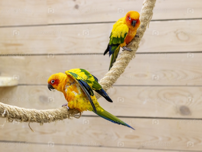Крупный план солнечных конур. Птицы