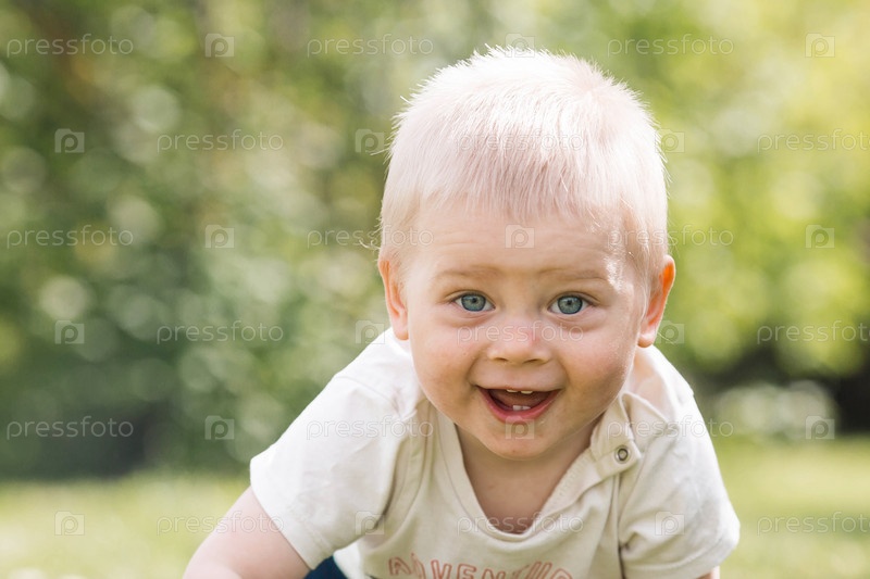 Портрет годовалого мальчика на улице. Счастливый ребенок гуляет в весеннем парке. Счастливое детство и отцовство