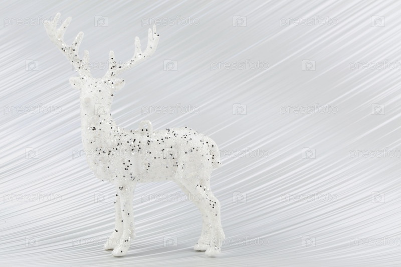 На серебряном фоне — белый рождественский олень