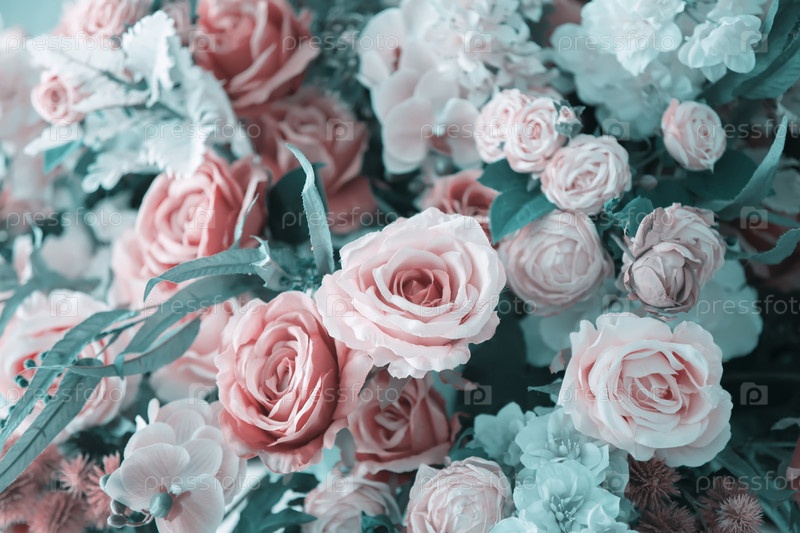 Белые и розовые искусственные розы крупным планом. Цветочный винтажный фон
