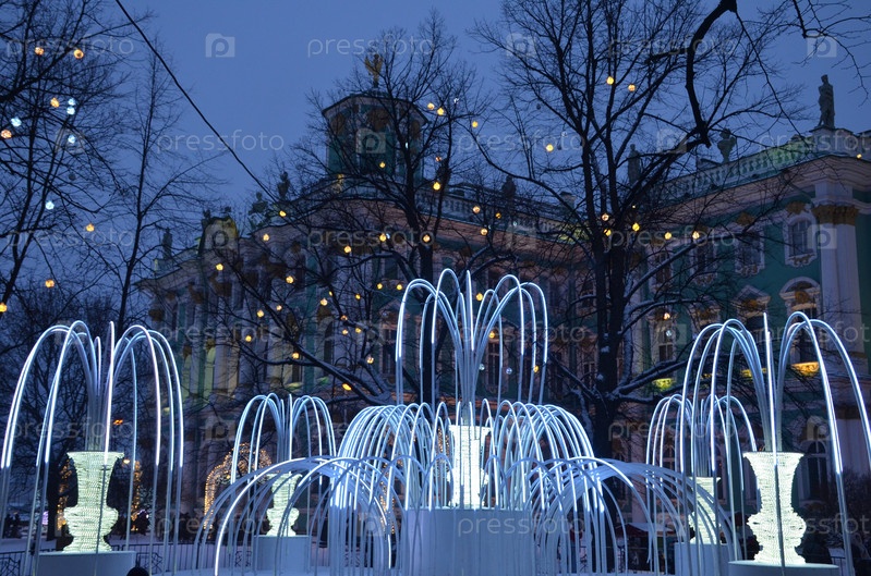 Новогодний световой фонтан в Саду Зимнего Дворца у музея Эрмитаж в Санкт-Петербурге