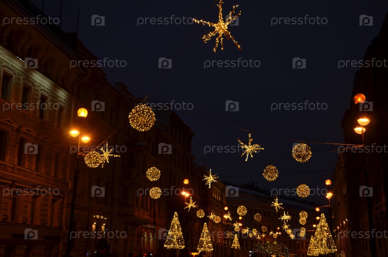 Новогодние украшения на Большой Морской улице у арки Главного штаба Эрмитажа в Санкт-Петербурге