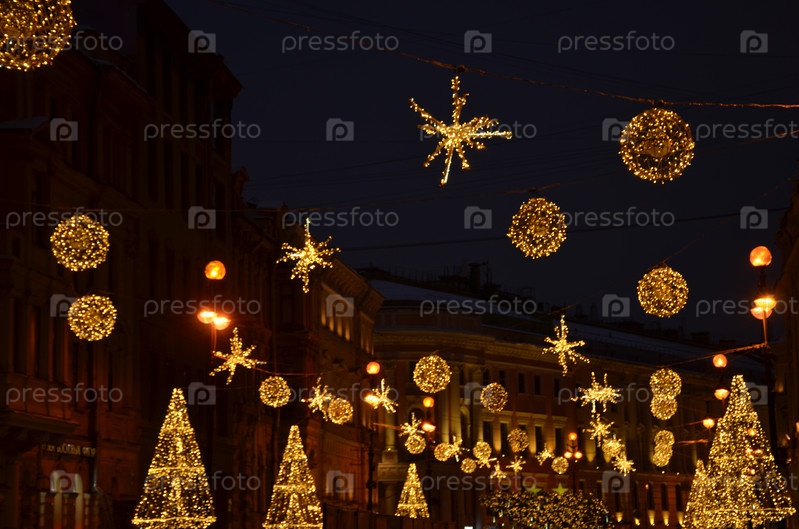 Новогодние украшения на Большой Морской улице у арки Главного штаба Эрмитажа в Санкт-Петербурге