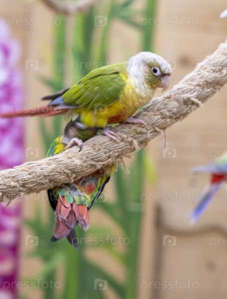 Крупным планом зеленощекие попугаи. Птицы