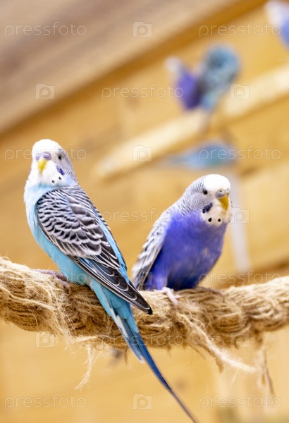 Крупный план волнистых попугайчиков. Домашние животные
