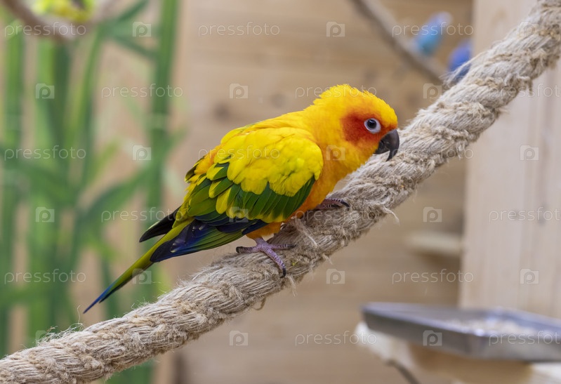 Крупный план солнечной конуры. Птицы