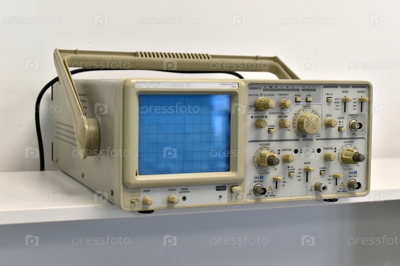 Электронный осциллограф в лаборатории. Прибор для измерения напряжения